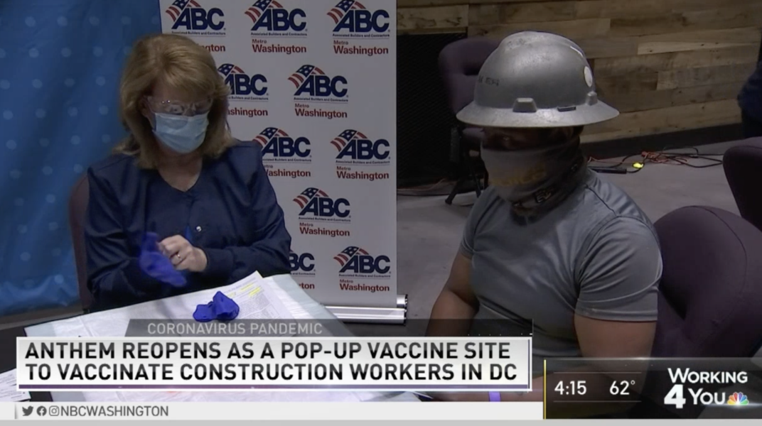 GPA provided communications and government affairs support to launch ABC Metro Washington’s COVID-19 vaccination drive for construction workers in May 2021. Click the picture to see the NBC-4 story.